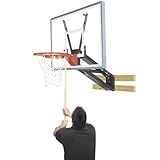 32" x 48" clear acrylic rectangular backboard with official size flex goal Goal height moves from 7 1/2' to 10' in 6" increments with a broom handle from the floor (not included) Attaches to wall with two load spreading struts Customer provides wall mounting anchors (indoor / outdoor) 22" safe play area at 10'CAUTION: Purchaser assumes all responsibility for determiningsuitability of wall to support all wall mounted basketball systems as well asselection and installation of wall mounting anchors.