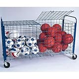 Totemaster Plus game ball cart is made of wire mesh in powder coat finish. On casters and finished in blue. 4 Large heavy duty swivel wheels . 2 Separate hinged covers that can be locked for secure storage . Rugged construction 0.19 in. all welded steel powder coated wire with 3 in. sq. mesh . 5 ft. L x 2 ft. W x 3 ft. H . 1-Year manufacturer's warranty This larger version of the Original Totemaster unit features an internal divider to keep equipment separate and a split top for easy opening and closing of the unit.