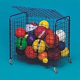 Your sports equipment storage solution! Cart features large holding capacity for all types of equipment, particularly ball storage. Rugged construction with 3/16" all welded steel powder-coated wire with 3" square mesh, four heavy-duty swivel wheels and a hinged cover that can be locked. Assembles in seconds, no tools required! 36"L x 24"W x 36"H. Holds up to 24 basketballs, soccer balls or playground balls.